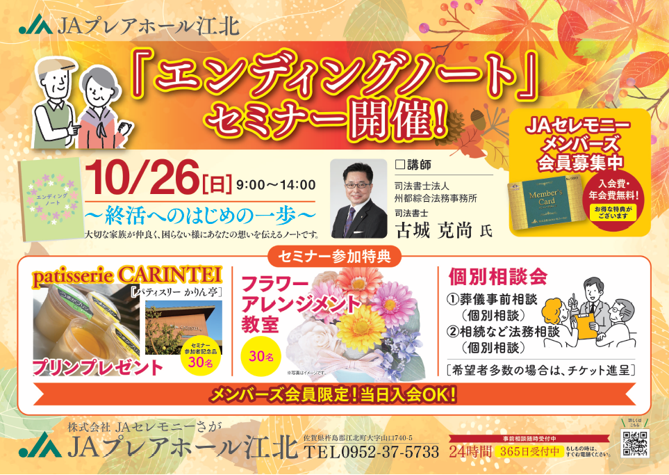 JAプレアホール江北 エンディングノートセミナー開催のお知らせ【10月26日】