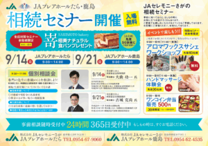 JAプレアホールたら・鹿島 相続セミナー開催のお知らせ【9月14日・2...