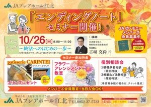 JAプレアホール江北 エンディングノートセミナー開催のお知らせ【10月...